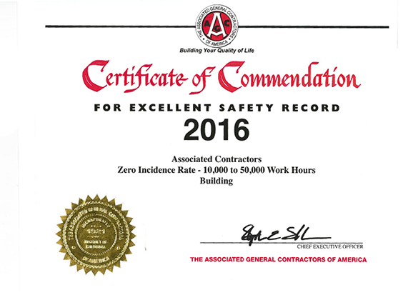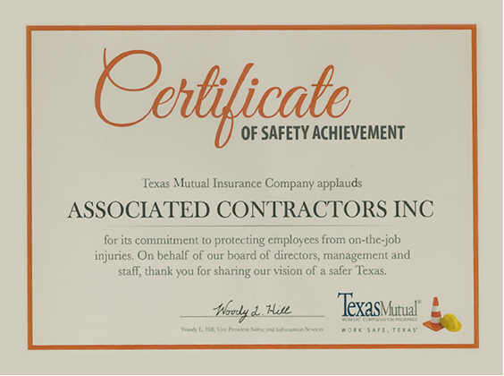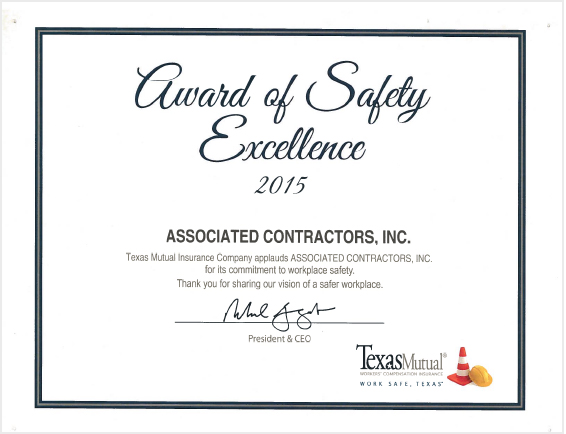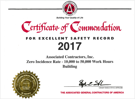 Safety is a top priority at Associated Contractors. Below are some of the awards we have received: